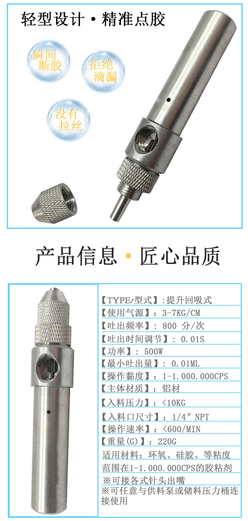 k1体育:小进料口15外径点胶笔本色/大量供应顶针式点胶笔 回吸式点胶阀