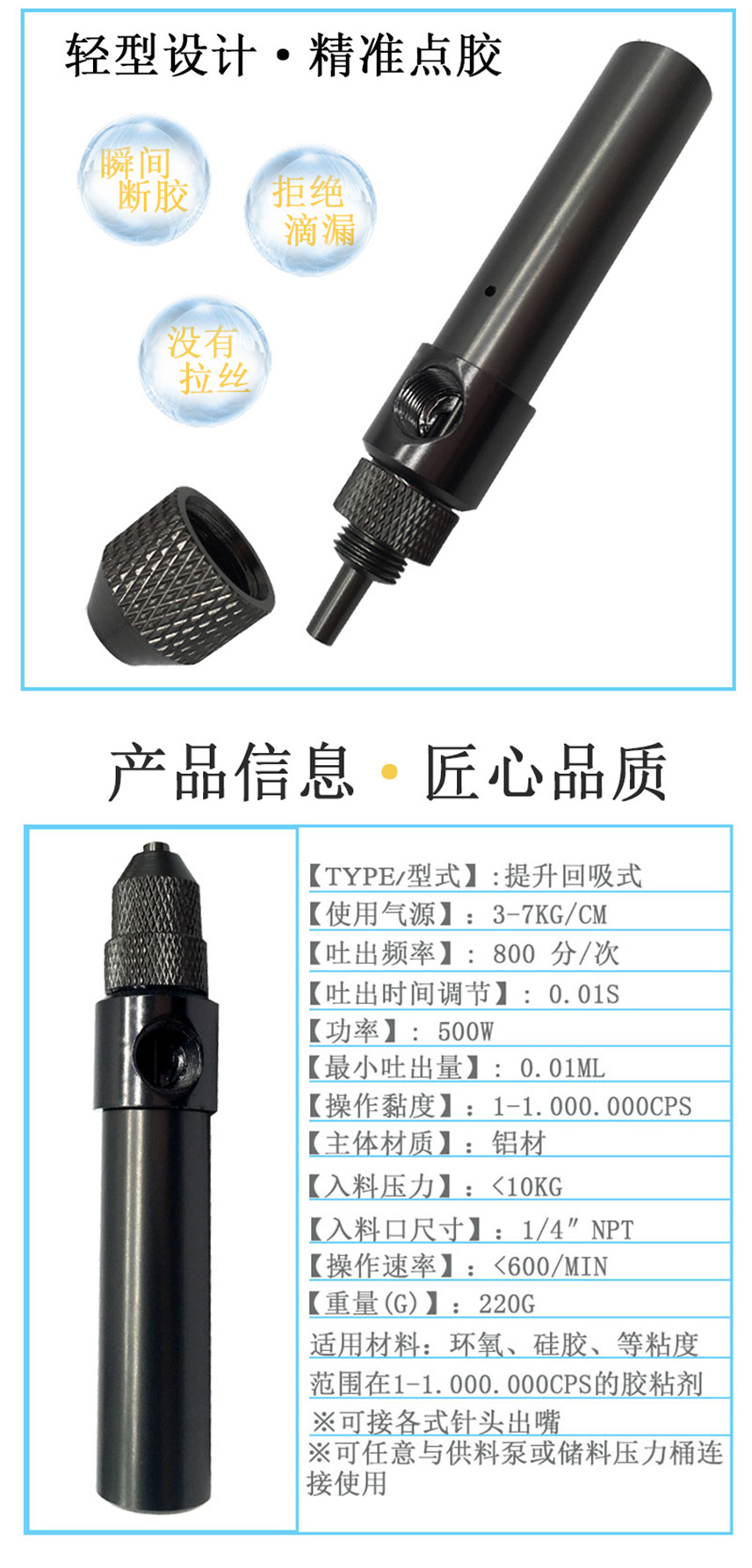 小进料口15外径点胶笔本色/大量供应顶针式点胶笔 回吸式点胶阀