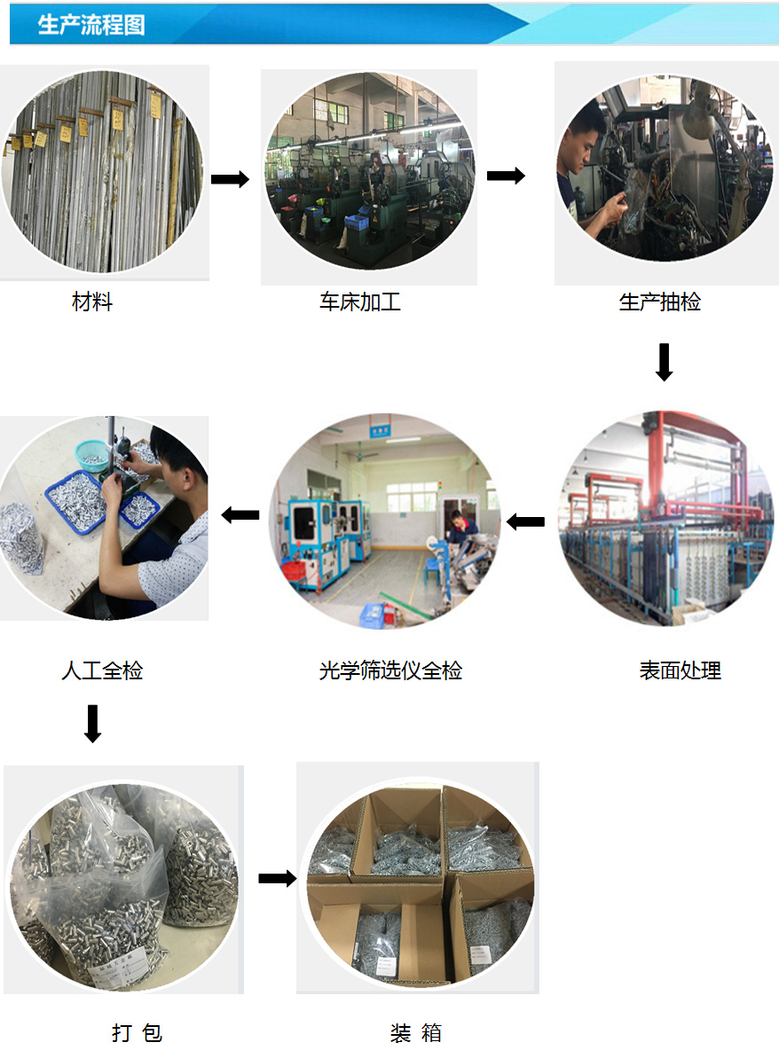 公司主要生产各类CNC车床件五金加工、自动车床件五金加工、高强度非标螺丝、加工不锈钢304CD纹电子小螺丝、散热器台阶弹簧螺丝、球头螺丝、滚花螺丝、 圆形螺母、滚花螺母/预埋镶嵌螺母(卡件)、铸件加工、 点胶机配件、点胶阀等产品.公司产品主要材料以铁,不锈钢,铝,铜为主。