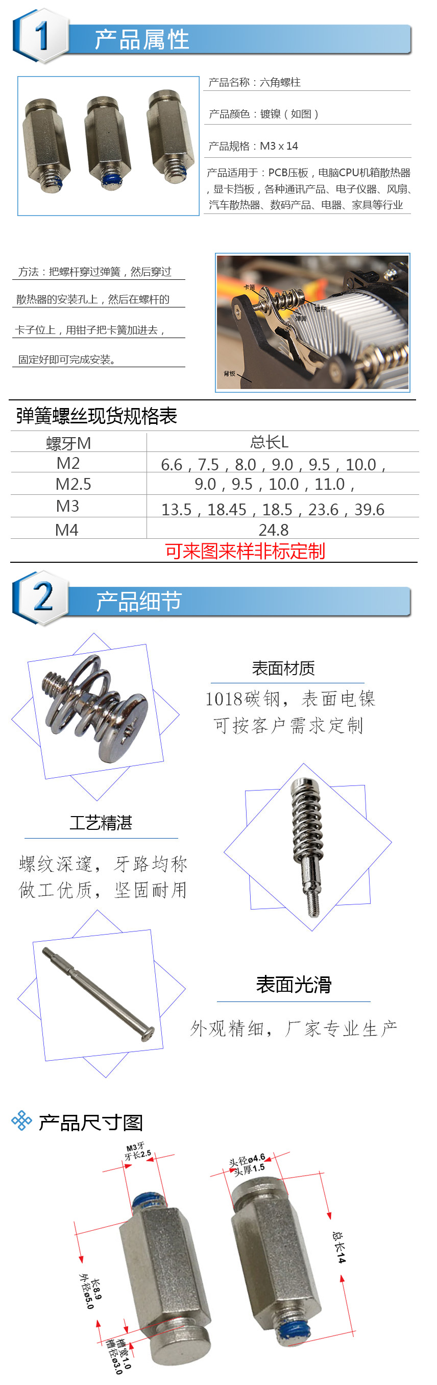 、加工304不锈钢CD纹、电子小螺丝、散热器台阶弹簧螺丝、球头螺丝、滚花螺丝、滚花铜螺母、铸件加工 、点胶阀等非标订制产品.