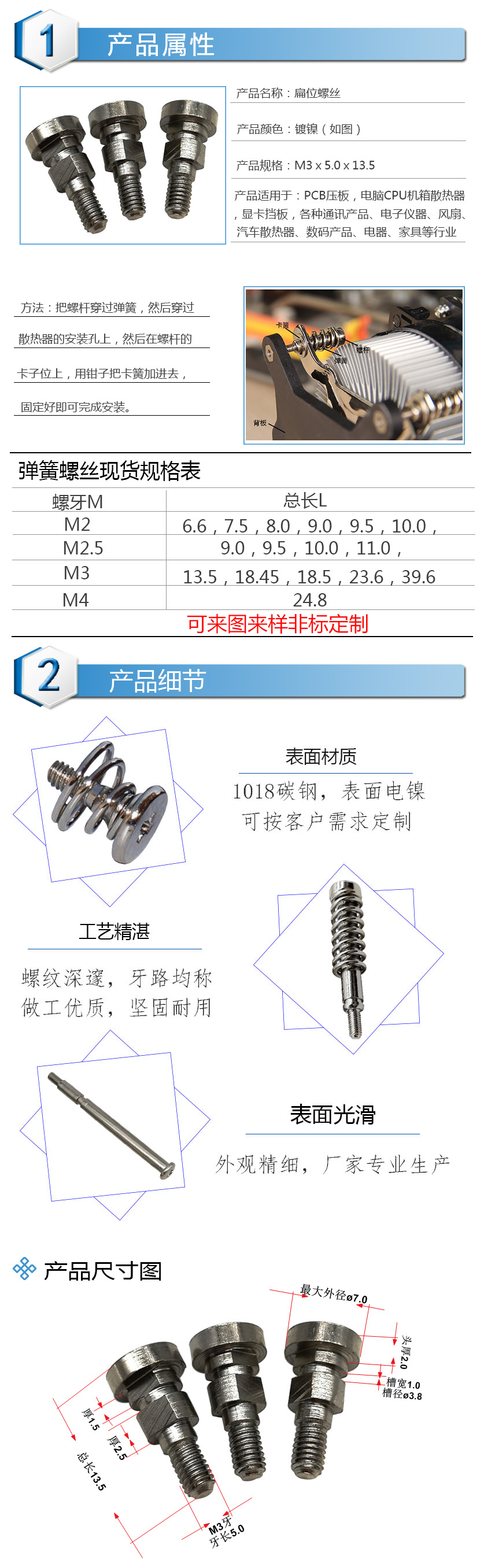 电脑专用扁位螺丝/电脑快拧螺丝/手柄螺丝/机箱手拧螺丝