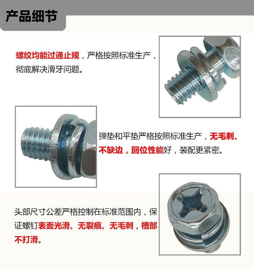 盘头梅花组合螺丝M5*14达克罗三组合螺丝