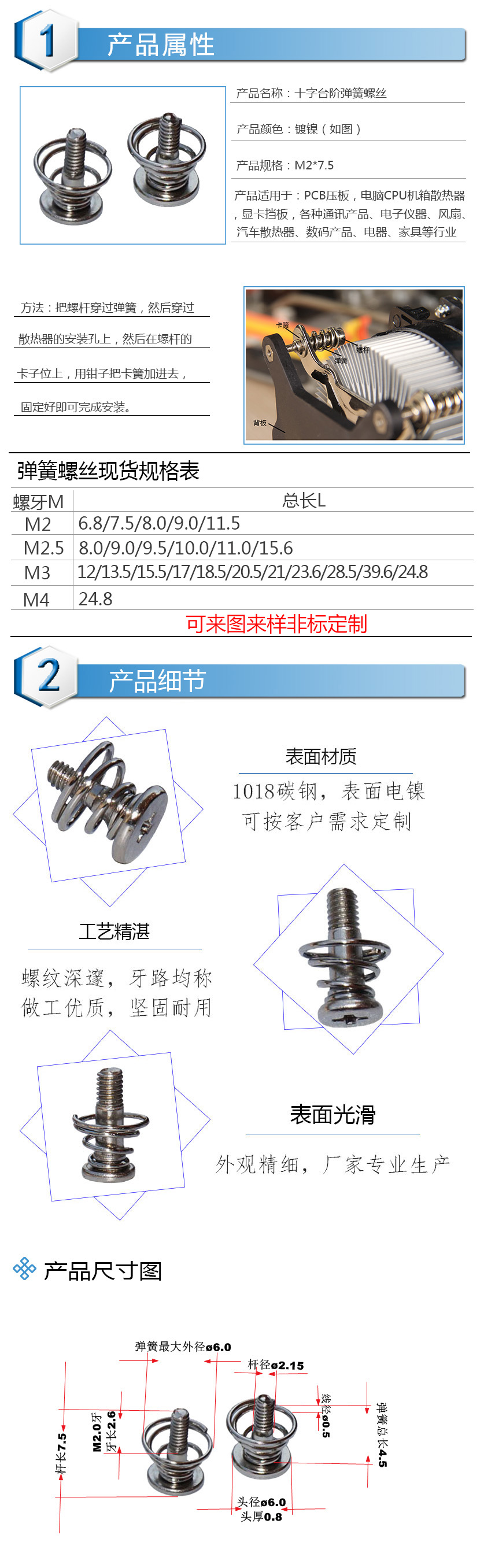 k1体育:PCB压板固定弹簧螺丝/散热器弹簧螺丝钉/弹簧组合螺钉