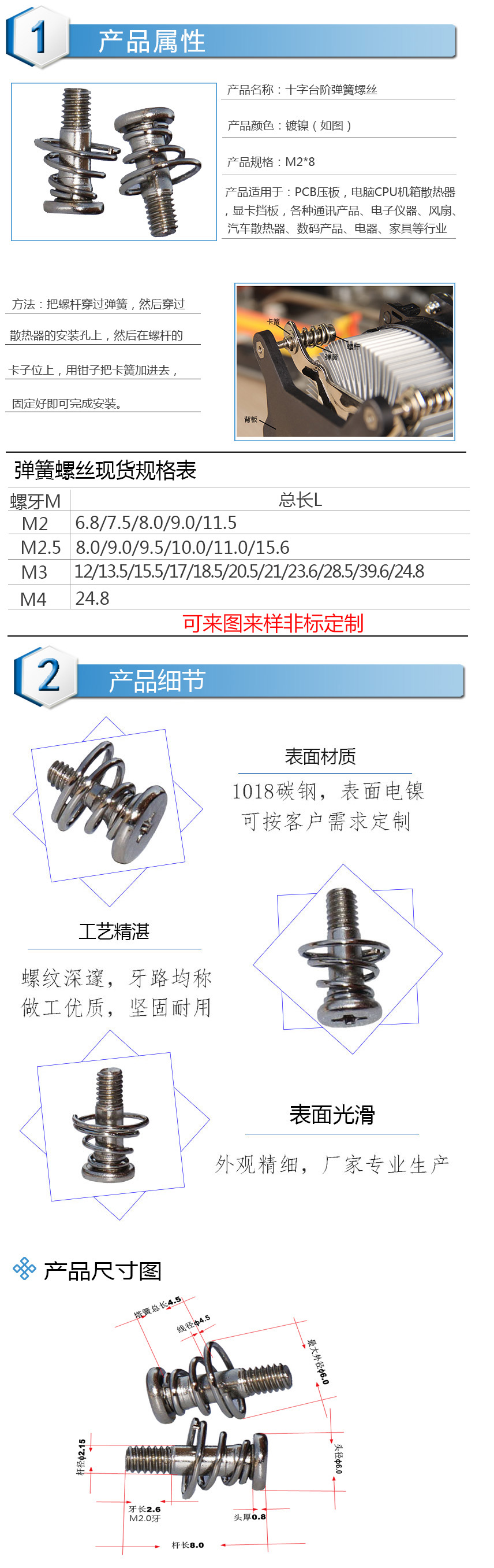 k1体育:CPU散热器弹簧螺丝钉/CPU扣具固定螺丝/非标螺丝订制