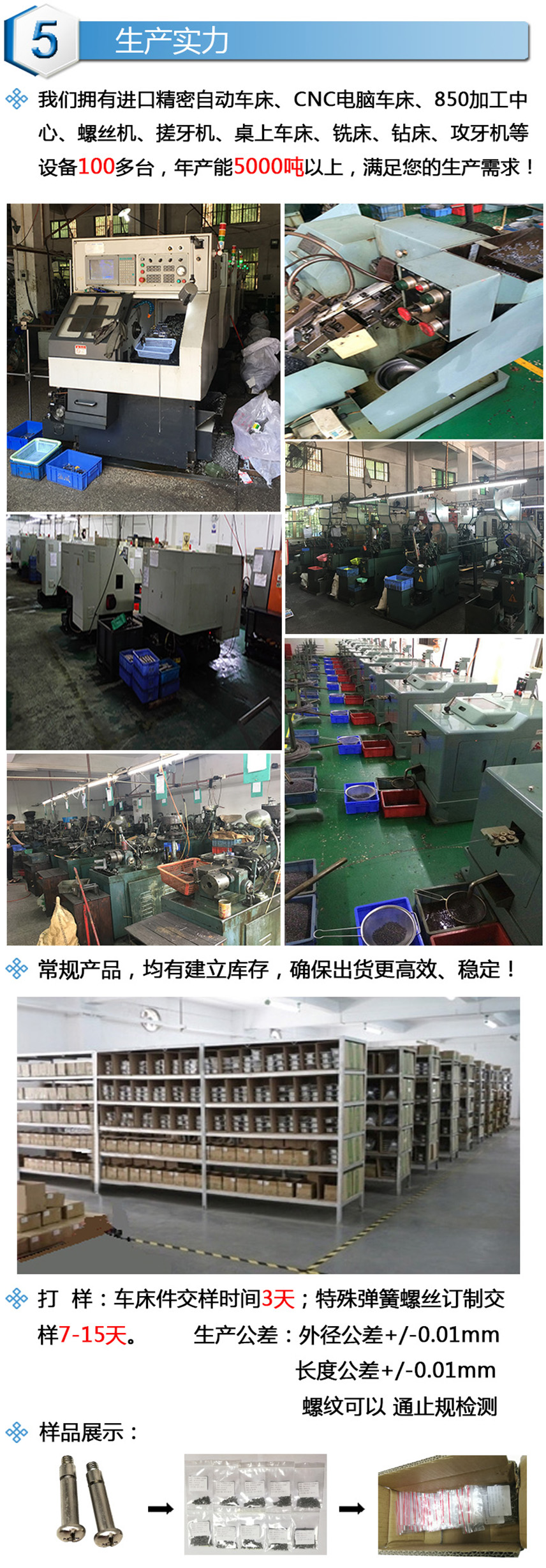 公司主要以铁,不锈钢,铝,铜材料为主。生产各类CNC五金车床件、自动车床件、加工304不锈钢CD纹、电子小螺丝、散热器台阶弹簧螺丝、球头螺丝、滚花螺丝、滚花铜螺母、铸件加工 、