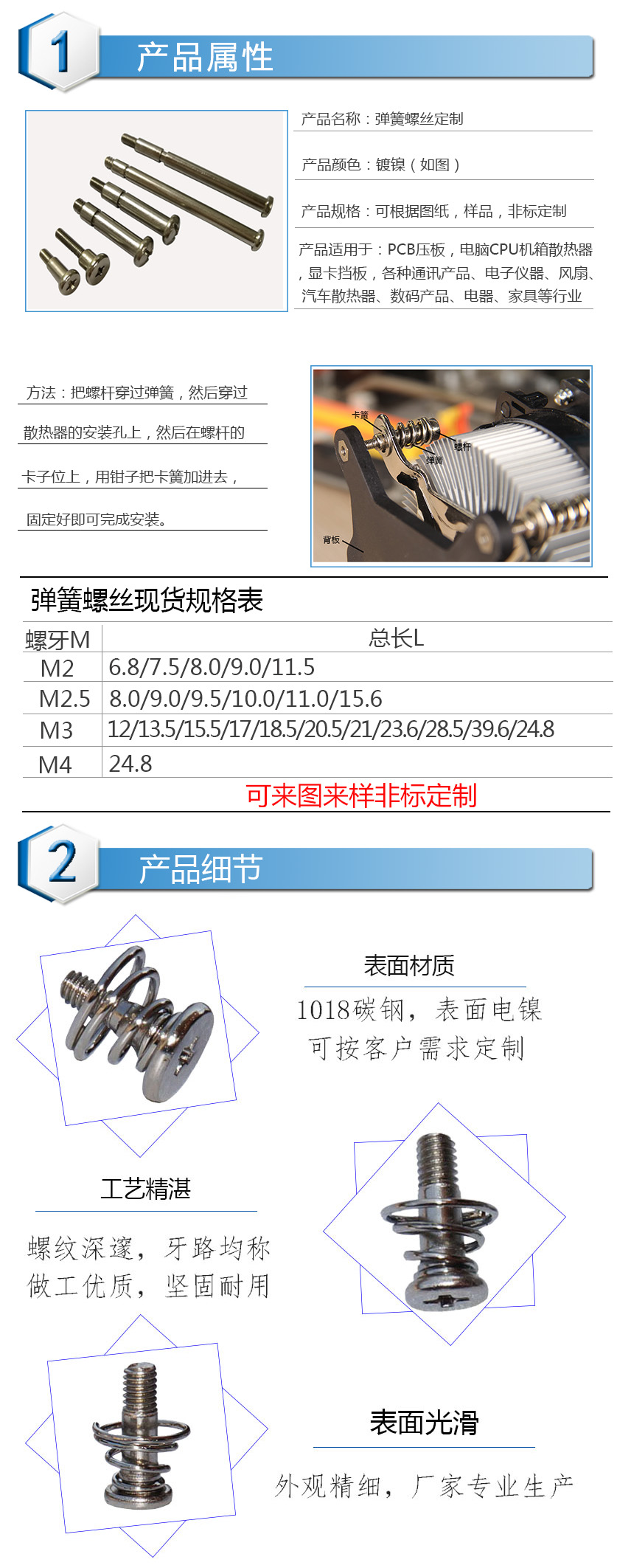 k1体育:CPU散热器弹簧螺丝钉/CPU扣具固定螺丝/非标螺丝订制