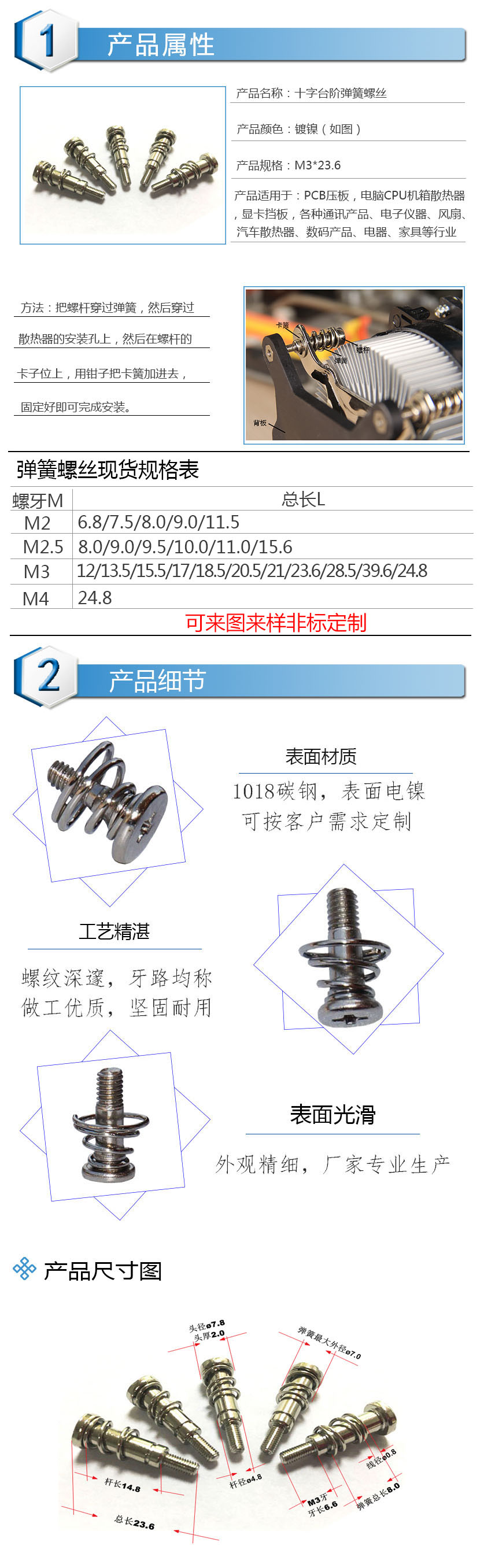 k1体育:CPU散热器弹簧螺丝钉/CPU扣具固定螺丝/非标螺丝订制