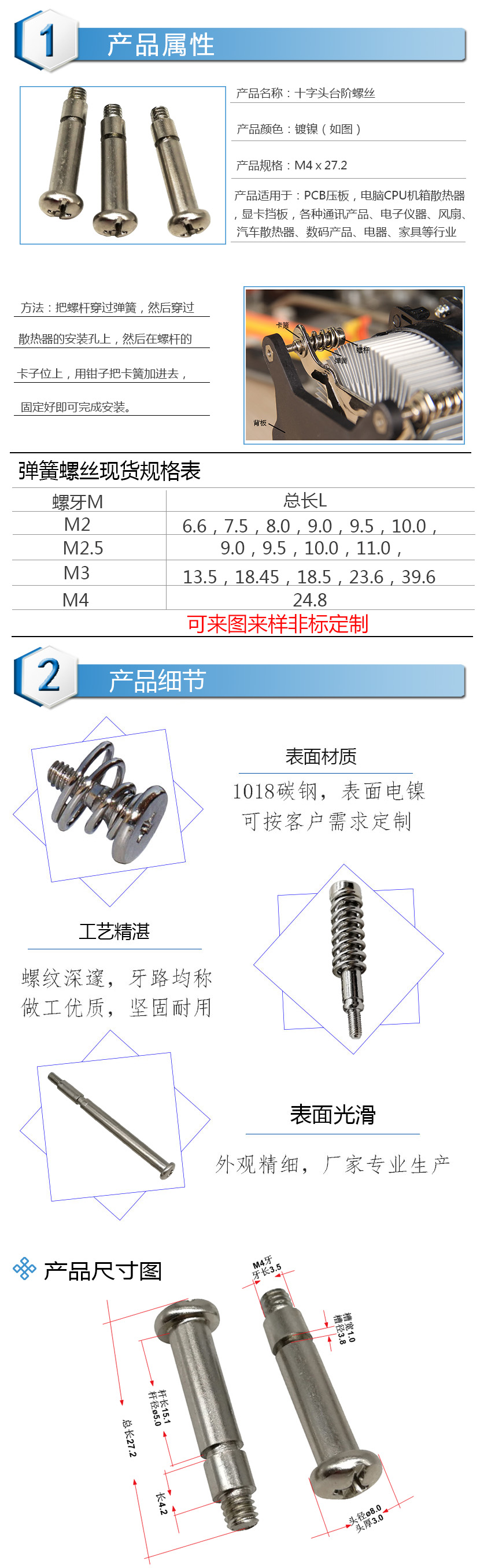 k1体育:CPU散热器弹簧螺丝钉/CPU扣具固定螺丝/非标螺丝订制